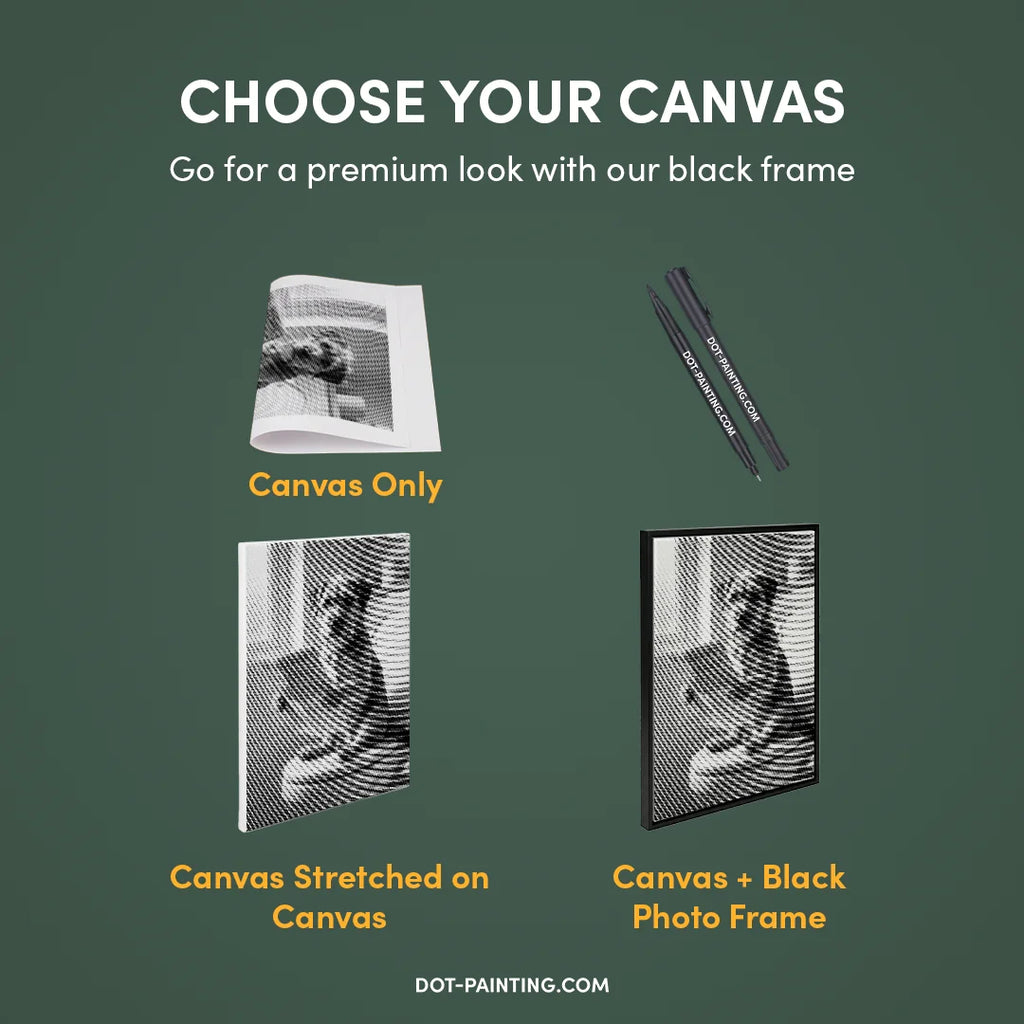Vous cherchez quelque chose de plus personnel ? Vous aimez l'idée du dot painting mais préférez peindre votre propre animal de compagnie, votre famille ou un souvenir de vacances ? Nous pouvons aussi le faire ! 👉 Cliquez ici pour transformer votre propre photo en un kit de dot painting personnalisé !