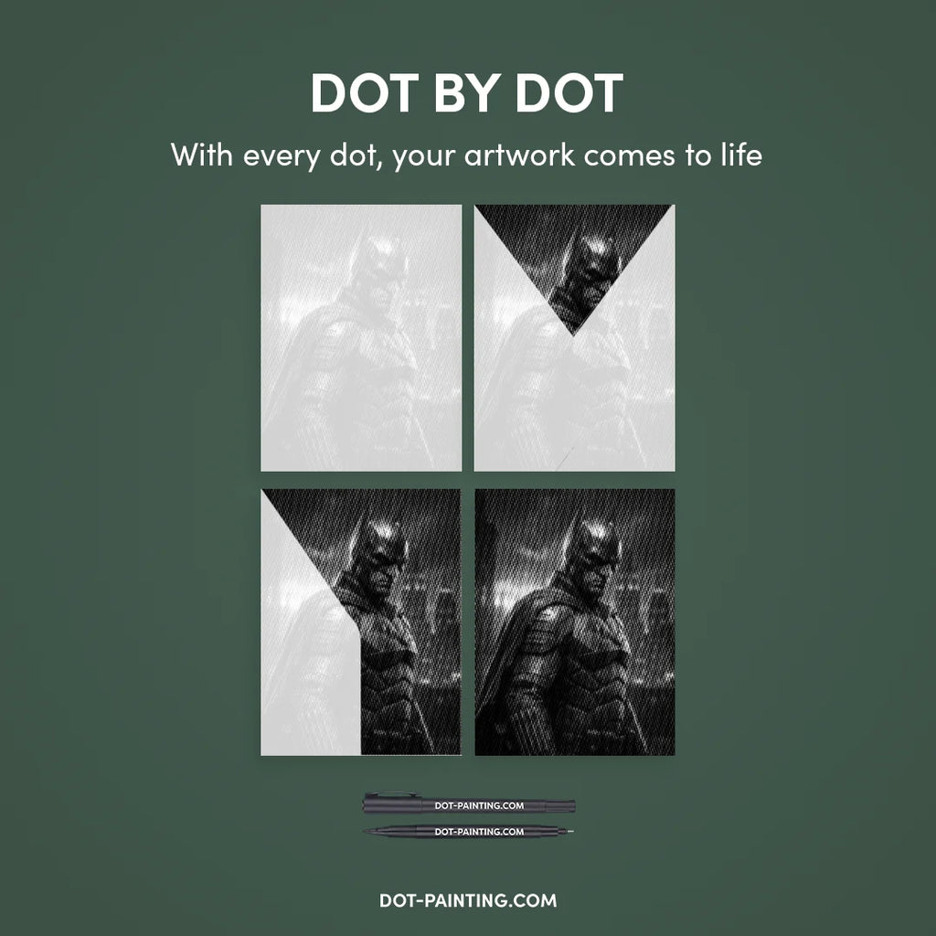 Avec le dot painting, vous utilisez des marqueurs de haute qualité pour donner vie au kit de dot painting Dark Knight, un point à la fois. C'est plus propre, plus facile et incroyablement satisfaisant.