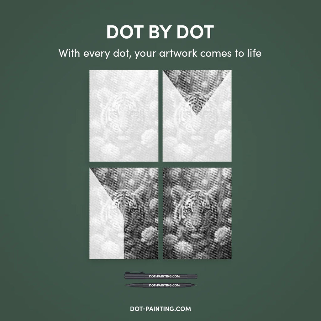 • Set de marqueurs à double pointe : Stylos de dot painting spéciaux avec deux embouts : 1,0 mm : pour remplir rapidement les points plus grands. 0,5 mm : pour la précision et les détails très fins.