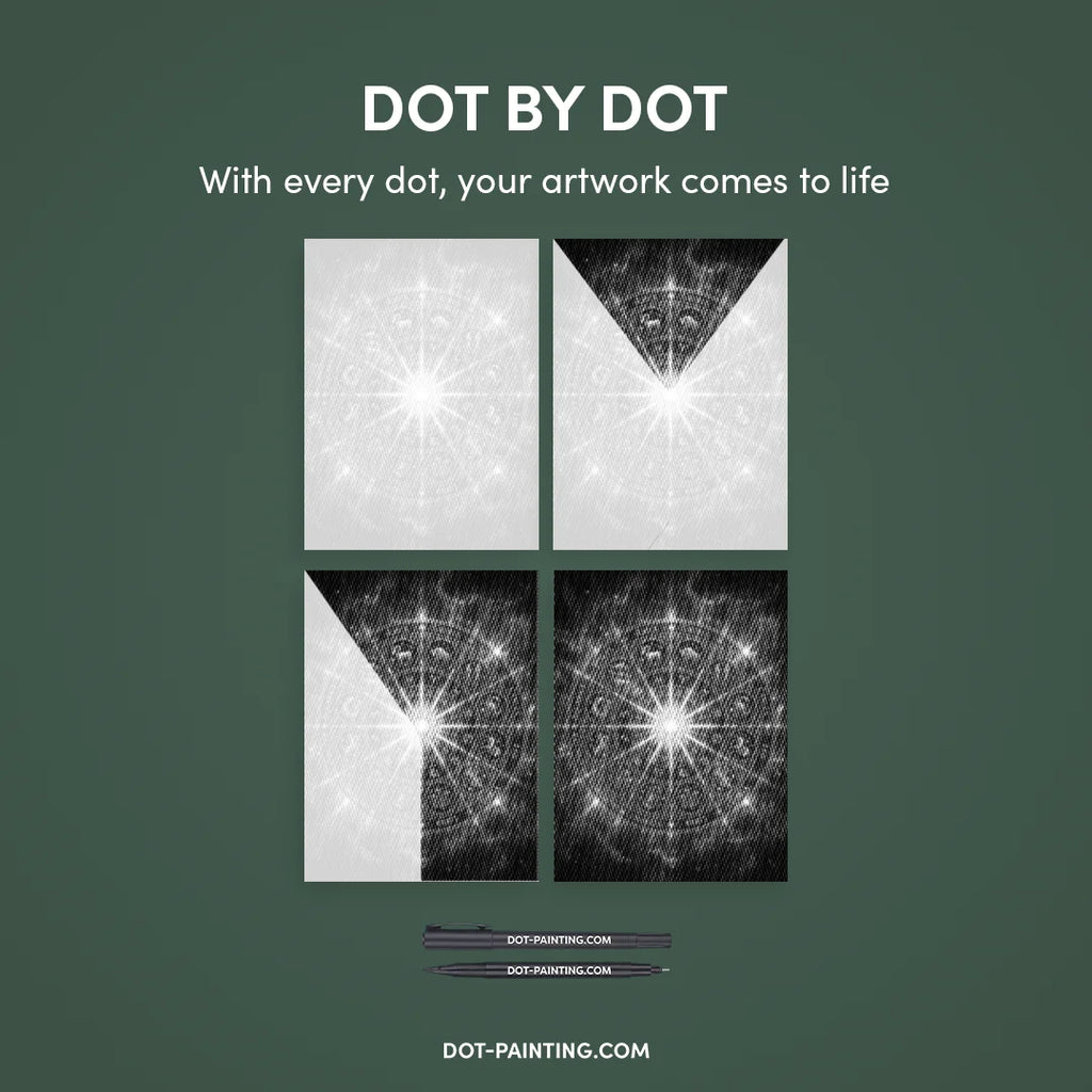 • Set de marqueurs à double pointe : Stylos de dot painting spéciaux avec deux embouts : 1,0 mm : pour remplir rapidement les points plus grands. 0,5 mm : pour la précision et les détails très fins.