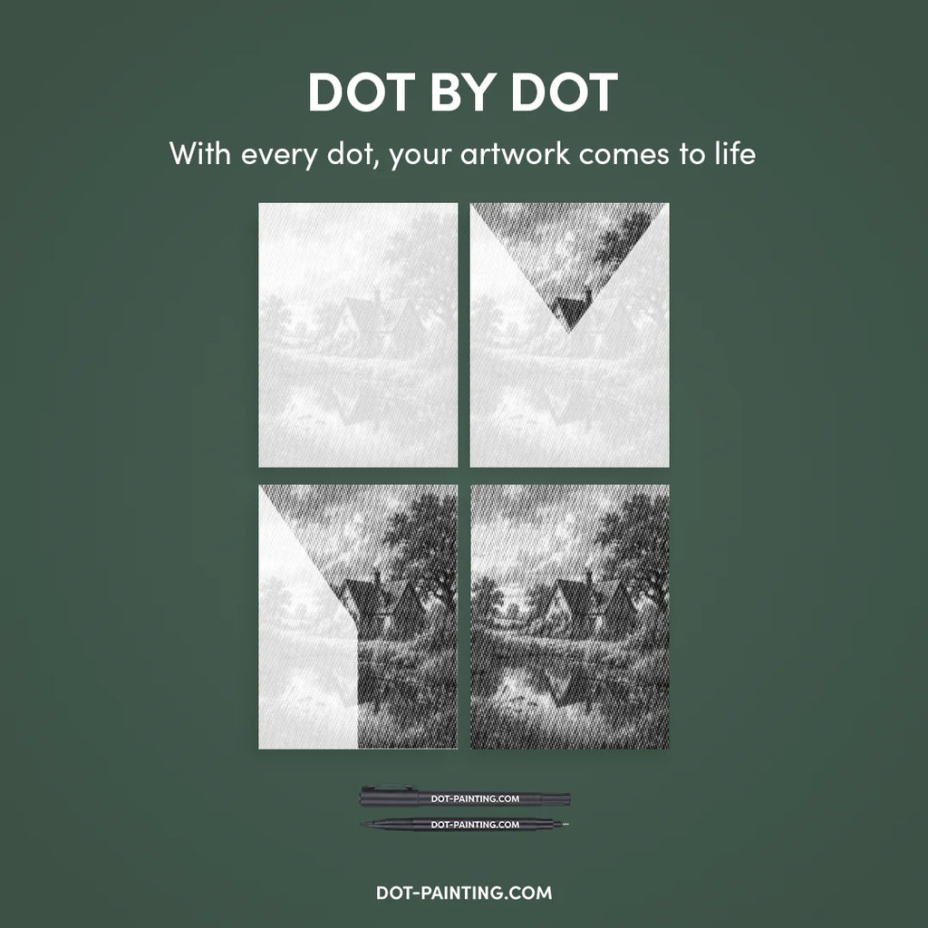 • Set de marqueurs à double pointe : Stylos de dot painting spéciaux avec deux embouts : 1,0 mm : pour remplir rapidement les points plus grands. 0,5 mm : pour la précision et les détails très fins.