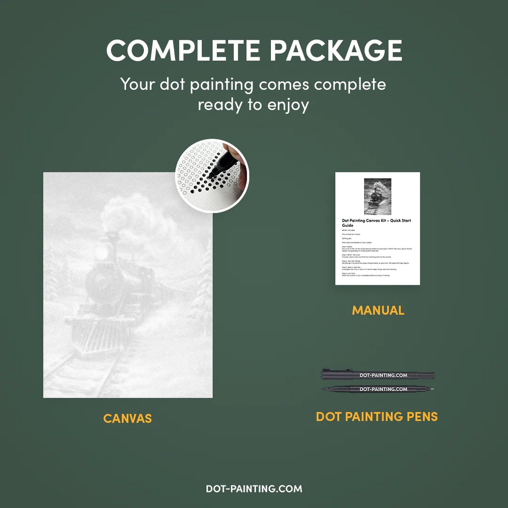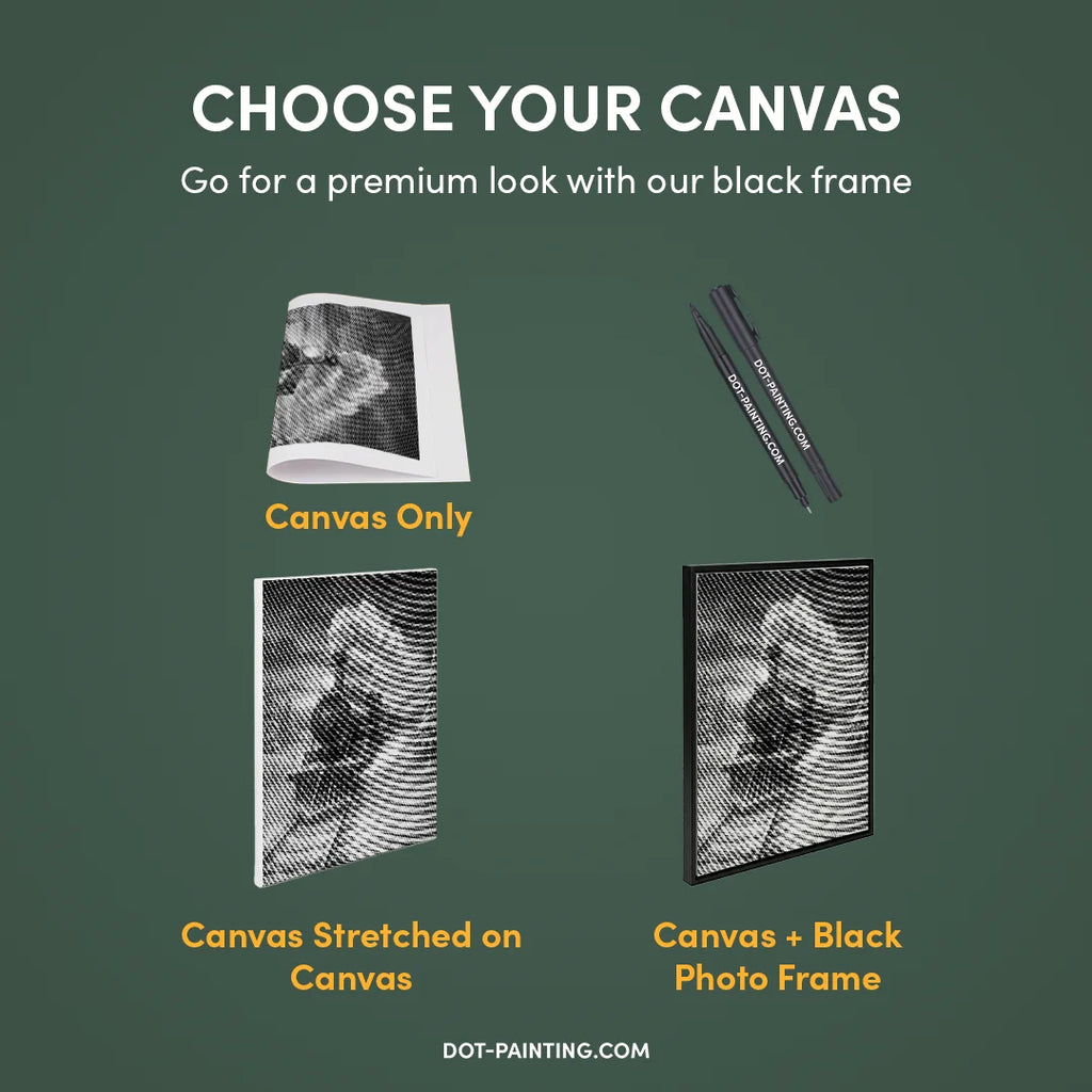 • 1x Toile premium (roulée) : Toile de haute qualité avec le design de votre choix. Nous l’expédions roulée dans un tube rigide, jamais pliée, pour que vous commenciez sur une surface lisse, sans plis.
