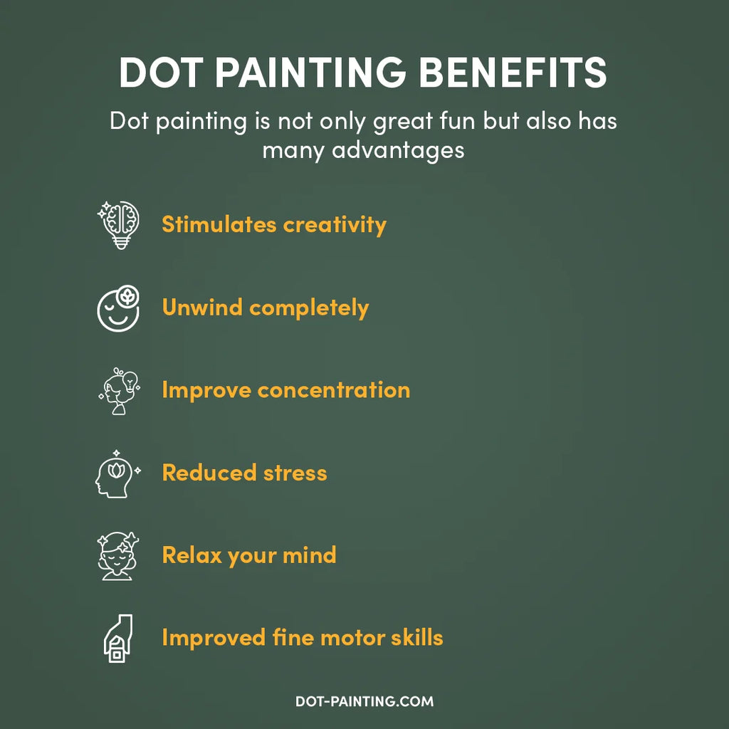 • Set de marqueurs à double pointe : Stylos de dot painting spéciaux avec deux embouts : 1,0 mm : pour remplir rapidement les points plus grands. 0,5 mm : pour la précision et les détails très fins.