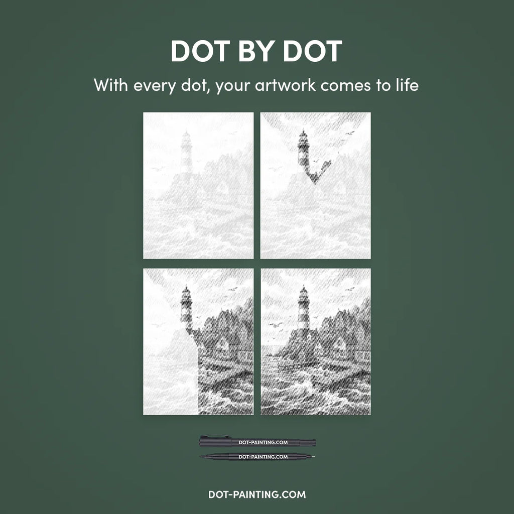 Village au phare Dot Painting