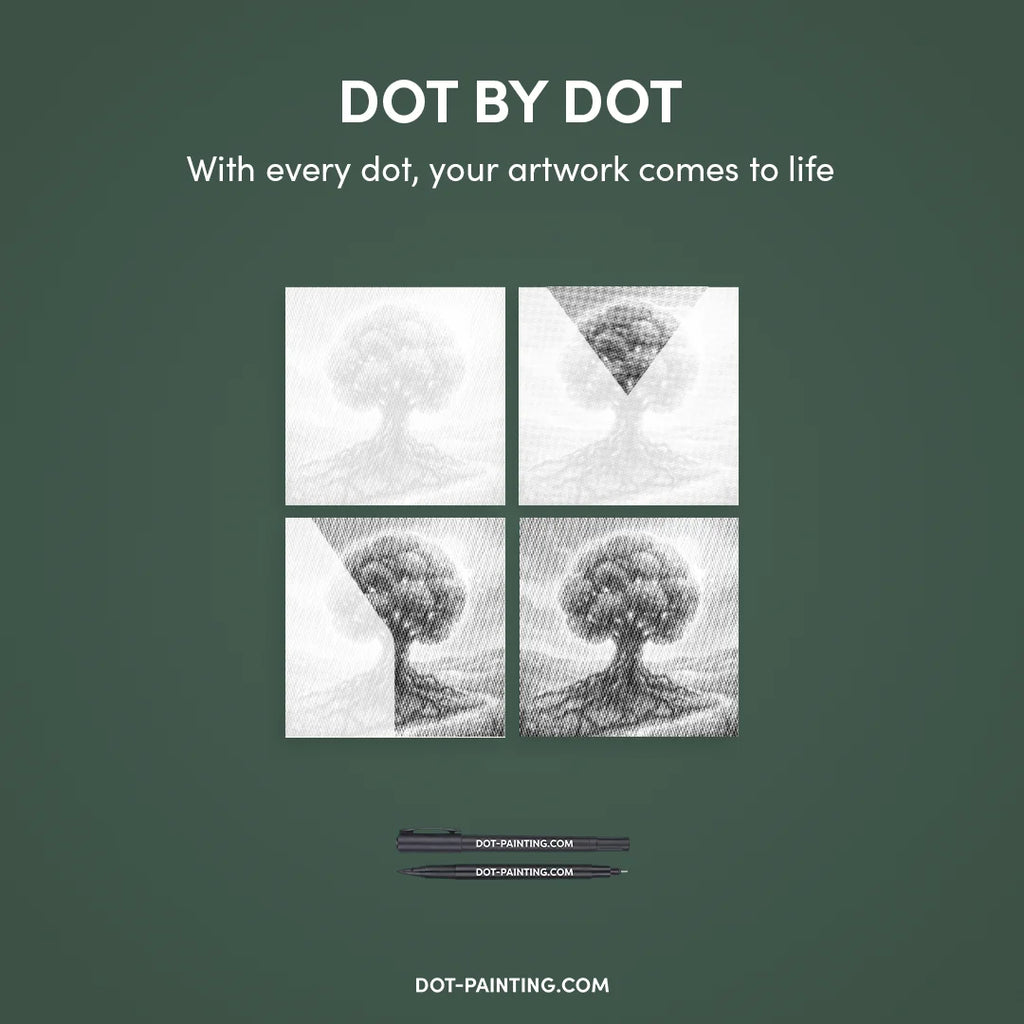 • Set de marqueurs à double pointe : Stylos de dot painting spéciaux avec deux embouts : 1,0 mm : pour remplir rapidement les points plus grands. 0,5 mm : pour la précision et les détails très fins.