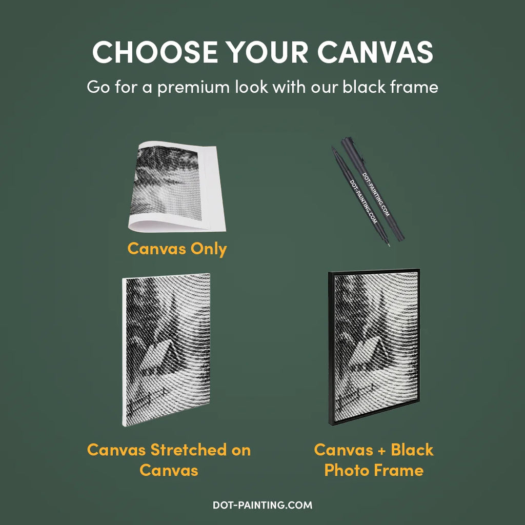 • 1x Toile premium (roulée) : Toile de haute qualité avec le design de votre choix. Nous l’expédions roulée dans un tube rigide, jamais pliée, pour que vous commenciez sur une surface lisse, sans plis.