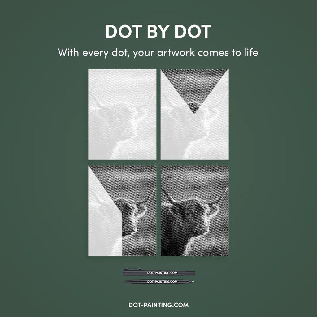Avec le dot painting, vous utilisez des marqueurs de haute qualité pour donner vie au kit de dot painting Schots, un point à la fois. C'est plus propre, plus facile et incroyablement satisfaisant.