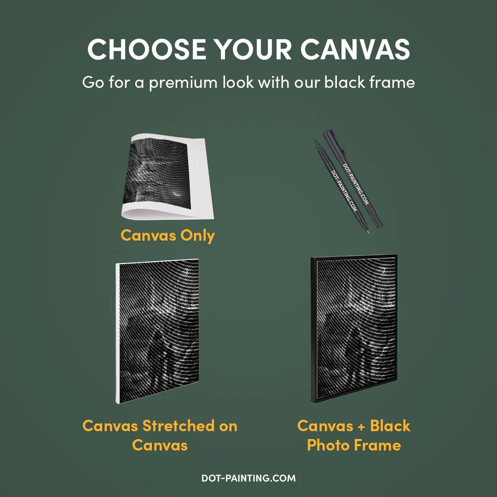 • 1x Premium Canvas (Rolled): High-quality canvas featuring your chosen design. We ship it rolled in a hard tube never folded so you start with a smooth, wrinkle-free surface.