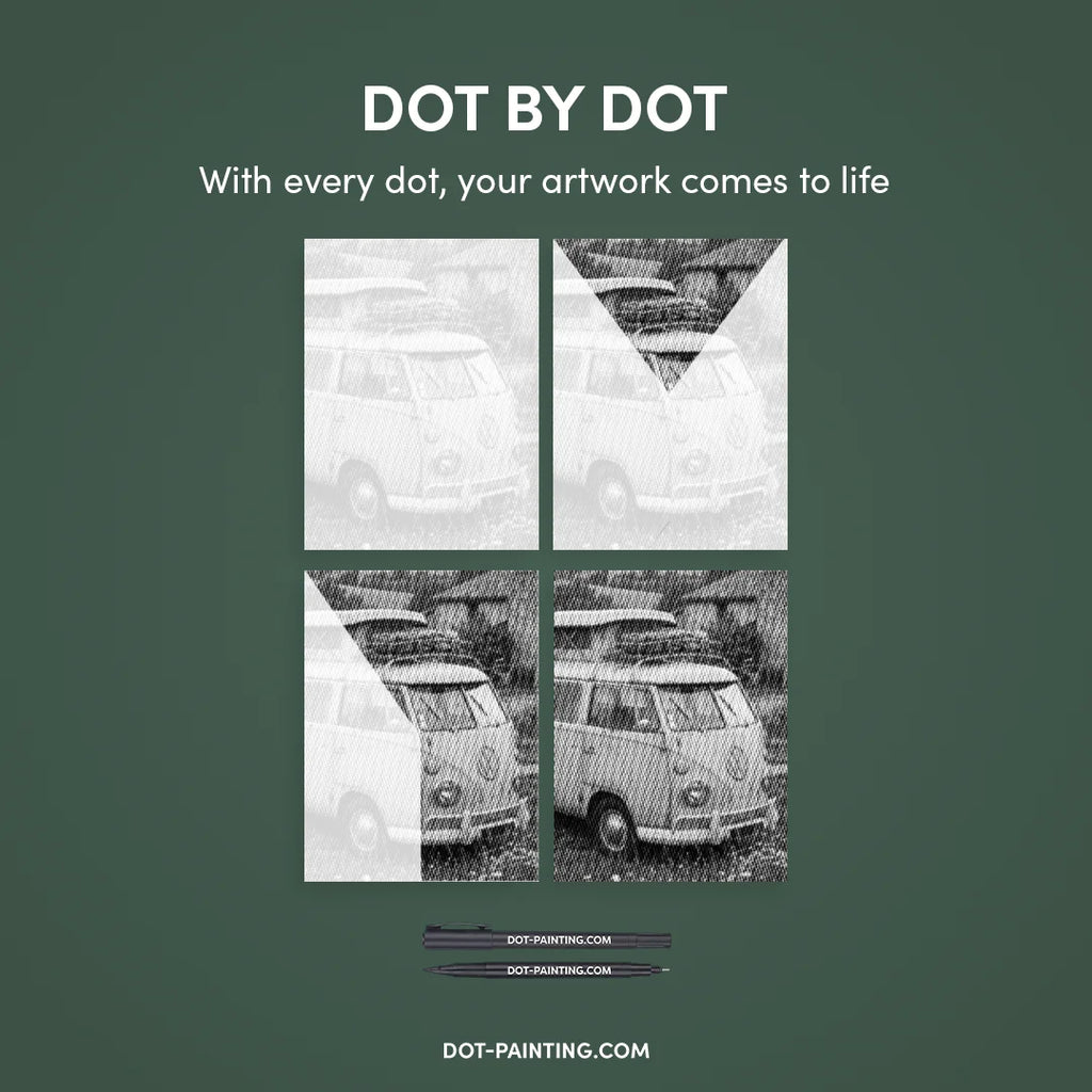 Avec le Dot Painting, vous utilisez des marqueurs de haute qualité pour donner vie au kit de Oude VW-bus Dot Painting, un point à la fois. C'est plus propre, plus facile et incroyablement satisfaisant.