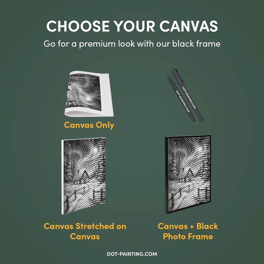 • 1x Toile premium (roulée) : Toile de haute qualité avec le design de votre choix. Nous l’expédions roulée dans un tube rigide, jamais pliée, pour que vous commenciez sur une surface lisse, sans plis.
