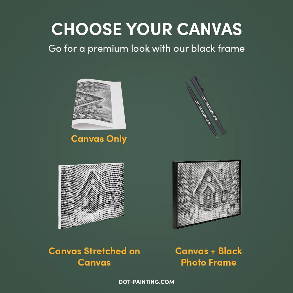 • 1x Toile premium (roulée) : Toile de haute qualité avec le design de votre choix. Nous l’expédions roulée dans un tube rigide, jamais pliée, pour que vous commenciez sur une surface lisse, sans plis.